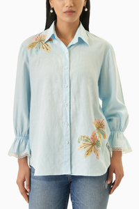 Introducing our Blossom Shirt, meticulously crafted from a blend of cotton and linen for optimal comfort and breathability. This straight-fit shirt boasts exquisite appliqué embroidery, adding a touch of sophistication and charm to your wardrobe.