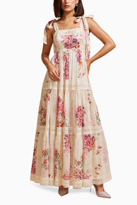 Featuring Blossom Whispers Long Dress by Roseroom, an Off White Printed Linen Dress with Shoulder Straps. Crafted from Linen Cotton in an elegant Off White and Pink palette, adorned with printed embroidery and delicate laces. It offers a standard fit for a timeless and graceful look.