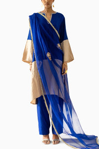 Fabric- Silk Color- Cobalt Blue Embroidery- Zardozi Fit- Relaxed Components- 3 Product Code- SVEESHAEA1502
