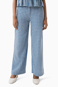 Featuring the Blue and Grey Escape Pant by OSHIN's SS'25 collection. These high-waisted pants feature a front fly closure, functional side pockets, and a clean straight-leg silhouette—offering comfort and structure for effortless everyday styling.