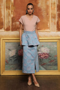 Gorgeous peplum denim embroidered applique roses all over. A perfect ensemble for a brunch, a sundowner, or a birthday celebration.