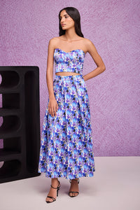 Crafted in luxurious Gajji silk, this pleated skirt showcases our signature Blue Aquarelle print. Designed to move with you, its pleated silhouette offers a sense of ease and elegance, making it a versatile staple for both everyday and occasion wear.