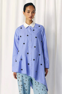 Taking shirts to the next level with this playful mix, this studded striped shirt exudes effortless charm with its asymmetrical hem and stripe play.