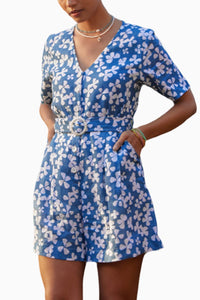 Our V-neck playsuit is a summer staple. Crafted in linen, it features relaxed shoulders and a playful pleat detailing at the waist. Pair it with a large hat and a straw bag for a day in the sun.