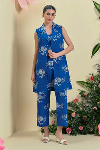 This elegant co- ord set features a sleeveless, all - over intricate embroidered notch-collar jacket paired with a coordinated bustier and tailored pants for a modern, refined silhouette. Designed to offer both comfort and confidence, it’s a perfect choice for when you want to feel effortlessly chic and put-together.