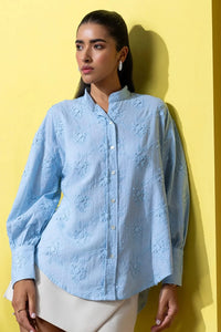 Adorned with intricate 3D embroidered flowers and petals, this elegant button-down blouse is perfect for the summer season. Designed for a relaxed fit, it offers a fuss-free, chic look that ensures all-day comfort and effortless style.