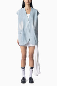Demi Waistcoat is airy jacket features a deep-V neckline, with an oversized fit. Made in denim which is perfect for layering with any look .