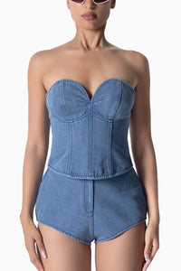 Denim Shorts will be a timeless staple for your wardrobe Something which is causal , comfortable and stylish at the same time . For closure a concdled zipper and hook and eye the side.