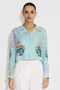 Blue Floral Crop Shirt
