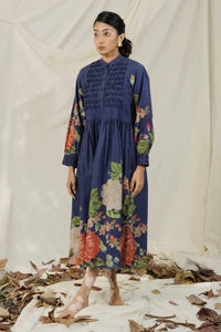 Blue & Green Poppy Bloom All Over Print Dress