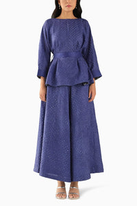 Featuring Blue High Waist Skirt by Twenty Nine India from Nisha Collection. This blue skirt adorns a flattering high waist and a chic tie-up belt, crafted from luxurious bandhani fabric for a blend of classic elegance and contemporary style.