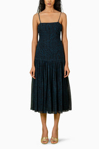This Blue Leopard Strappy Midi Dress in soft georgette features a gathered lower hem that adds fluid movement and charm. With its sleek, feminine silhouette and striking print, it transitions effortlessly from chic brunch outings to elegant evening looks.