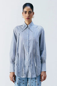 Chic and effortless, this lurex stripe shirt features delicate fringe detailing and a relaxed fit for a touch of understated glamour.