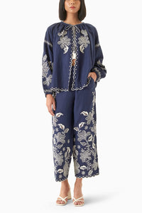 Fea turing the Blue Ma rlyn Shrug with Pa nts &a mp; Ja cket co-ord set by Miri Pret. Cra fted from a blend of 70% linen a nd 30% viscose, this set is in a blue hue tha t offers a regula r fit. Embra ce comfort a nd style with its versa tile design.