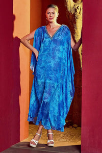Effortlessly chic, this loose-fitting blue kaftan dress offers a relaxed yet elegant silhouette, perfect for casual elegance