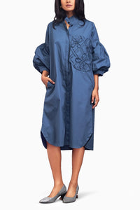Featuring Blue Oversized Shirt Dress with Puff Sleeves and Embroidered Pocket by Deepika Arora. This effortlessly stylish oversized shirt dress combines comfort, contemporary design, and unique detailing. Made from soft, breathable cotton, it offers a relaxed that drapes beautifully on the body for an easy-going, casual look. The cool blue hue adds a refreshing, timeless touch, The standout feature of this dress is the beautifully embroidered pocket, which adds an intricate, artisanal touch to the overall design.