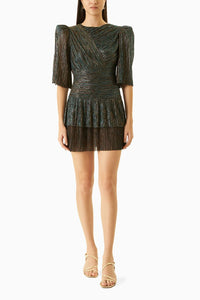 Sleek and stylish, the flared sleeves with a fitted look accentuated by copper embellishments makes this dress a winner.