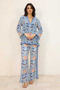Step into effortless elegance with our Blue Printed Top and Pant Set, featuring intricate blue prints and a perfectly tailored fit. Designed for the modern woman, this sophisticated ensemble blends timeless charm with contemporary style, making it ideal for both casual chic outings and refined occasions.