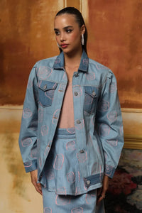 Intricate Embroidered rose applique on denim. Swaroski button down denim jacket. Boho-Chic exclusive and a must have in your wardrobe.