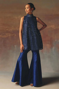 Blue Short Hi Neck A Line Top with Dupian Bellbottoms