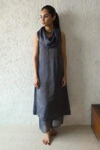Composition: Sheer Metallic Silk & Cotton Slip Color: Blue Steel Fit: Relaxed Fit Components: 2 (Dress & Slip)x Length: 44" Product Code: SVEKISHKMDR/COWL/BLUE