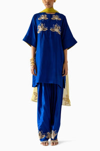 Fabric- Organza, Silk Color- Cobalt Blue Embroidery- Pearl Motifs Fit- Relaxed Components- 3 Product Code- SVEESHAEA1514