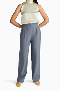 Featuring Blue Suiting Pleated Trousers by Refined Revolution. These trousers blend 69% polyester, 29% wool, and 2% elastane for comfort. With a mid-rise, side pockets, and front zip closure. Fits true to size with a relaxed fit. If between sizes, size down for optimal comfort.