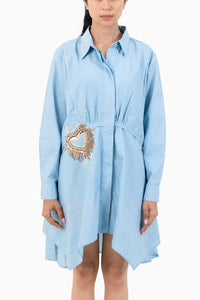 Featuring Blue Taz Dress by URAIB from The Forest Affair Collection. Luxuriously crafted from chanderi, this dress exudes opulence in blue color, offering a sophisticated and statement-making addition to your wardrobe.