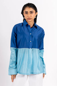Featuring the Dual Tone Shirt by URAIB's A/W'25 Collection. Crafted in elegant Cotton Chanderi, this front-open design beautifully contrasts ecru and taupe panels, enhanced with delicate bead detailing along the seam. With its long sleeves and true-to-size fit, this shirt offers a perfect blend of bold color play and refined sophistication.