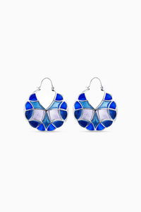 Featuring Blue Varichrome Hoops by Manner India. These 40 mm hoop earrings with a touch of mystic spheres are handcrafted in 92.5% silver and have an anti-tarnish protective coating. These earrings have transparent enamel details in vibrant colors & have an ear wire lock which is super easy to wear.