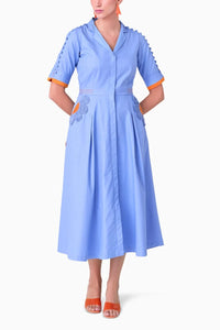 Embrace effortless style with the Pacha dress, crafted from soft cotton twill in a rich blueberry hue. This versatile dress features a flattering silhouette, making it perfect for both day and evening wear. Pair it with your favorite accessories for a chic look.