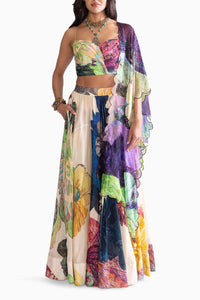 Color: Blouse- Multi, Dupatta- Green, Purple, Lehenga- Multi