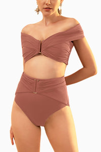 Featuring the Blush Alatus Bikini Set from Tizzi's Sepia Garden Collection. This winged bikini set features a classic U-trim detail and drapes elegantly on the body like a garment. It offers moderate coverage and includes removable cups for versatile comfort and support.