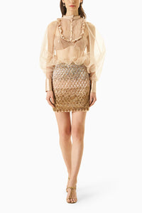 Embroidery details- Skirt- Gold, Silver And Blush Bugle Beads
