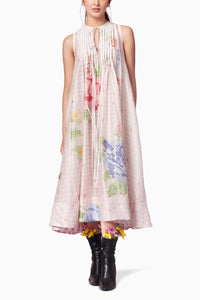 Unveiling the Blush Blossom Sleeveless Dress, an epitome of grace in Chanderi silk. With its flared silhouette and hanging lace design, it exudes elegance. True to fit, it ensures comfort without compromising style. Adorned with a unique Pink Gingham print and cross-stitch roses, it's a poetic interpretation of timeless femininity.