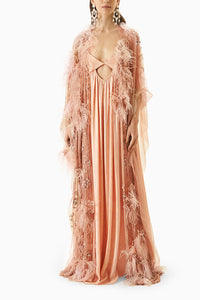 Embroidery details- Cape- Bugle Beads, Sequin, Beads, Rhinestones, Faux Lather Laser Cut & Feather Detailing