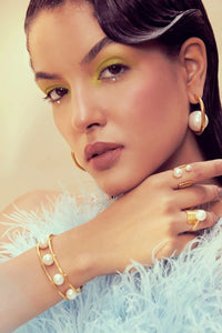 The adjustable Bolt Cuff features a sleek design with a stunning white pearl, set on hypoallergenic brass for a comfortable and durable fit. The 22k gold-plated finish adds a touch of luxury, beautifully complementing the elegance of the white pearl. With its adjustable cuff design, this bracelet ensures a perfect fit for any wrist size, making it a versatile accessory for both casual and formal occasions.
