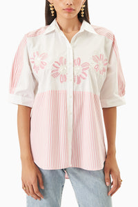 Featuring a colour block design and beadwork embroidery, this short-sleeved cotton shirt blends comfort with standout style.