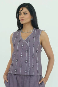 The Bree vest coat is the perfect addition to your fall wardrobe. Crafted from 100% linen with intricate surface detailing and contrast color binding, it's designed to elevate your style effortlessly.