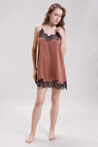 Step into elegance with this stunning bronze lace dress! Featuring intricate lace detailing and a flattering fit, this dress is perfect for any special occasion. The sophisticated V-neck design adds a chic touch, while the beautiful silhouette enhances your natural curves.This set is ethically made in our atelier and is finished with our special Mysthelle branded hardware.