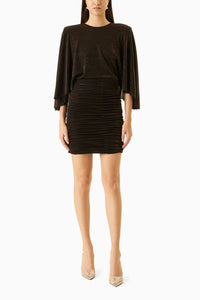 Sleek and stylish, the flared sleeves with a fitted look accentuated by copper embellishments makes this dress a winner.