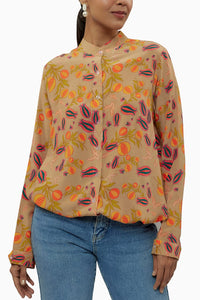 The Brown Anaar Jaal Ochre Print Crepe Front Drawstring Top blends intricate anaar jaal and ochre patterns on soft crepe fabric. The front drawstring allows for a customizable fit, adding both comfort and style. The warm brown and ochre tones create a rich, earthy look, perfect for casual outings or layered with your favorite accessories for a chic ensemble.