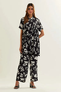 Featuring Buna Pleated Shirt And Pant Set by Label Earthen from Loom Florist Collection. This pleated shirt comes with bottom is perfect for everyday wear, combining casual comfort with a chic factor. Its refined pleats and sleek design elevate your daily style effortlessly.