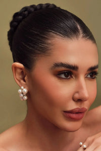 These beautiful earrings feature white manufactured pearls, set in hypoallergenic brass for a comfortable fit. With sterling silver posts for durability and a luxurious 22k gold-plated finish, they add a touch of elegance to any outfit.