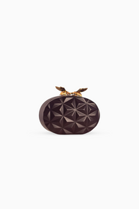 Burgundy Ovals are designed to liven an evening dress, handcarved wooden clutches, structured to a stand-out shape. The metallic hardware is polished to perfection and adds a dazzle to the carved surface of the bag.