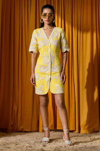Featuring the Butter Yellow Waistcoat Dress by Bohochic's Palmera Collection. A chic waistcoat-inspired co-ord set adorned with signature embroidery, perfect for a summer brunch or a stylish sundowner. Effortlessly elegant, it blends timeless charm with contemporary flair.