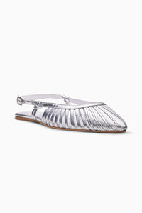The Camille Silver Ballerina features stunning leather craftsmanship that’s guaranteed to turn heads. With its sleek and shiny finish, these sandals elevate any outfit with a touch of elegance. Perfect for any occasion, they’re as stylish as they are comfortable.