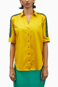 Canary Yellow Emerald Swarovski Ribbon Shirt