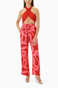 "Composition - Vegan Silk Color - Red Pin Print Embroidery Details - Top Sticthing knots Product Code - SVERIGUSRT014"