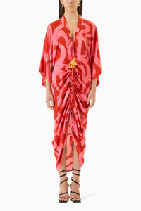 Composition - Vegan Silk Color - Red Pink Print Embroidery Details - Digitally Printed, Knots Product Code - SVERIGUSRT015